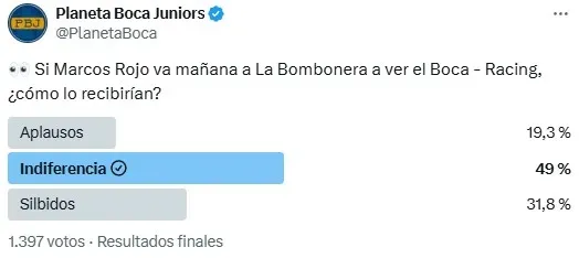 En una entrevista realizada en la cuenta de Planeta Boca Juniors por “X” (Twitter), participaron alrededor de 1400 usuarios y la respuesta fue unánime. El 49% de los simpatizantes indicó que habrá indiferencia para la visita del marcador central. Mientras que el 31,8% lo recibirá con silbidos y el 19,3% restante con aplausos por todos estos años en el cuadro de la Ribera.