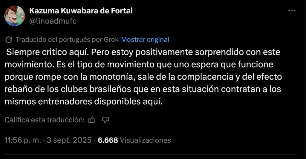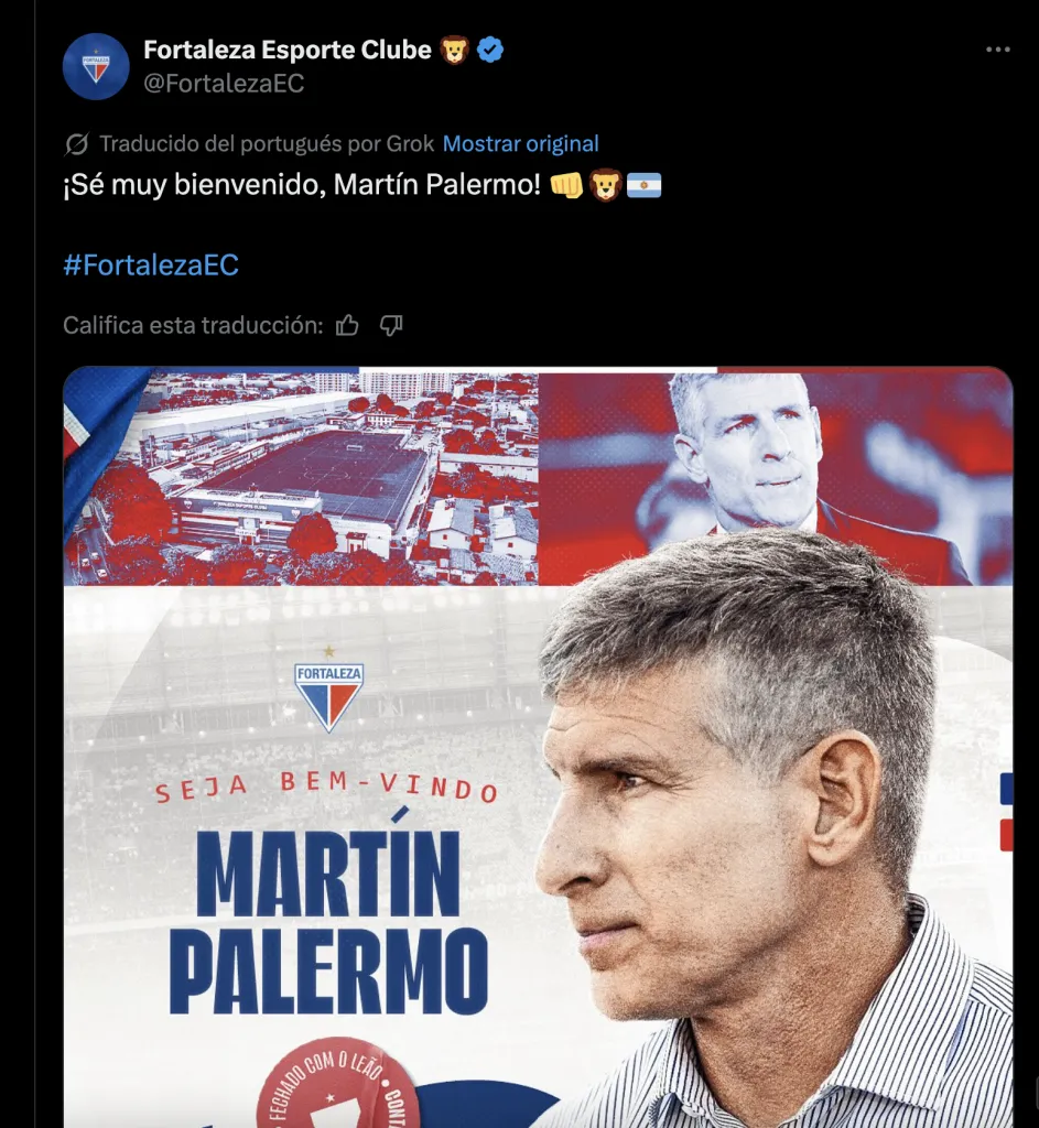 Después de su experiencia como entrenador de Olimpia de Paraguay, club en donde ganó la liga local en 2024, Palermo fue presentado como nuevo DT de Fortaleza de Brasil. Y a través de las redes sociales, los hinchas del club brasilero le dieron una calida bienvenida al ídolo Xeneize: “Tiene coraje”, “Es el tipo de cambio que uno espera” y “Suerte, profesor”.