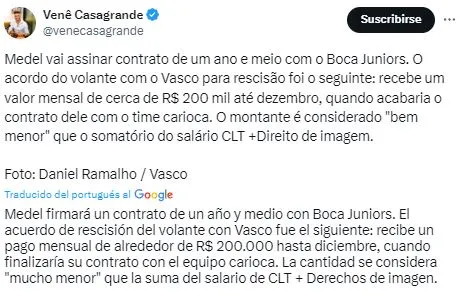 Para que pueda retornar al fútbol argentino, el emblema de la Selección de Chile debió realizar sus gestiones con Vasco da Gama. El periodista Venê Casagrande brindó detalles sobre el acuerdo de rescisión. En primer lugar, recibirá un pago mensual alrededor de 200 mil reales hasta diciembre, fecha en la que finalizaba su contrato con esta institución. Además, profundizó sobre su situación con el cuadro de la Ribera e indicó que firmará un contrato por un año y medio.