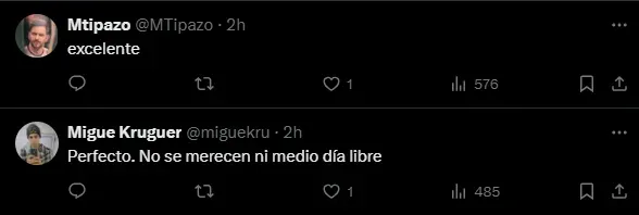 En el último tiempo, con Fernando Gago a la cabeza y en el interinato de Herrón, los fanáticos se mostraron disconformes al otorgarles días libres a los protagonistas en momentos que parecían ser inoportunos. Ahora, Russo tomó otra dirección y los simpatizantes se mostraron de acuerdo. “Excelente“, “Perfecto” y “Empezamos bien” fueron algunas de las expresiones que usaron para referirse a esta decisión de Miguelo.