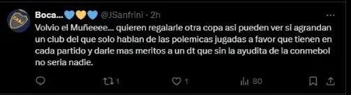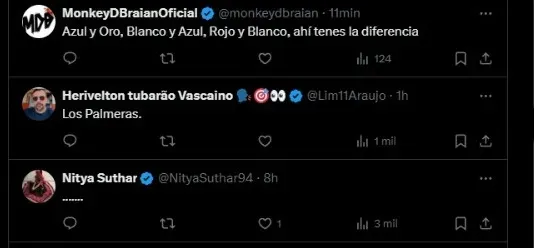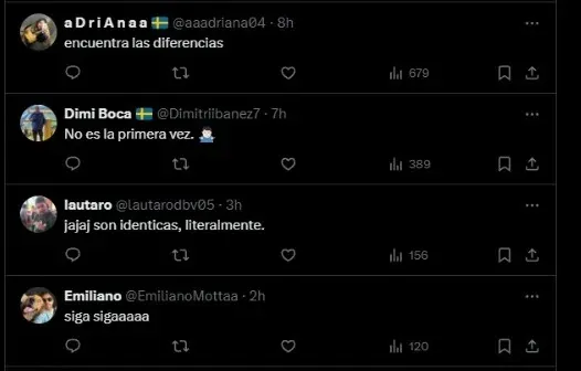 Algunas de las reacciones de los hinchas de Boca: “Azul y Oro, Blanco y Azul, Rojo y Blanco, ahí tenés la diferencia”, “Si usa camiseta roja/blanca juegue todo pelota”, y “Ya cansan hermano, qué les sorprende además?“.