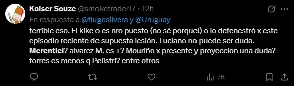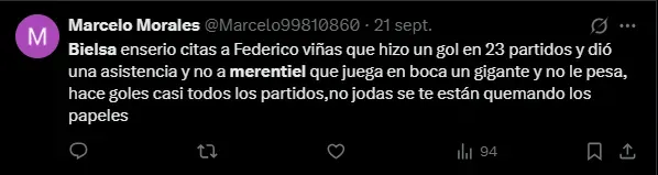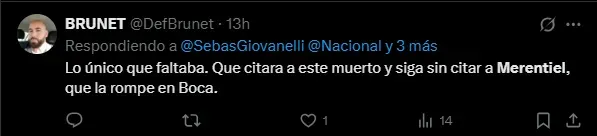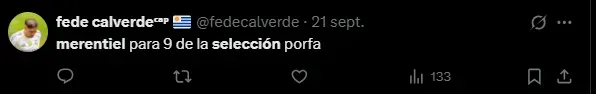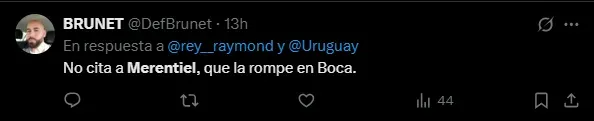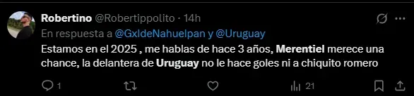 “Lo único que falta, que siga sin citar a Merentiel” y “Merentiel merece una chance” son algunos de los comentarios de los simpatizantes, que claramente quieren verlo en el elenco ‘Charrúa’ o que al menos tenga una oportunidad.