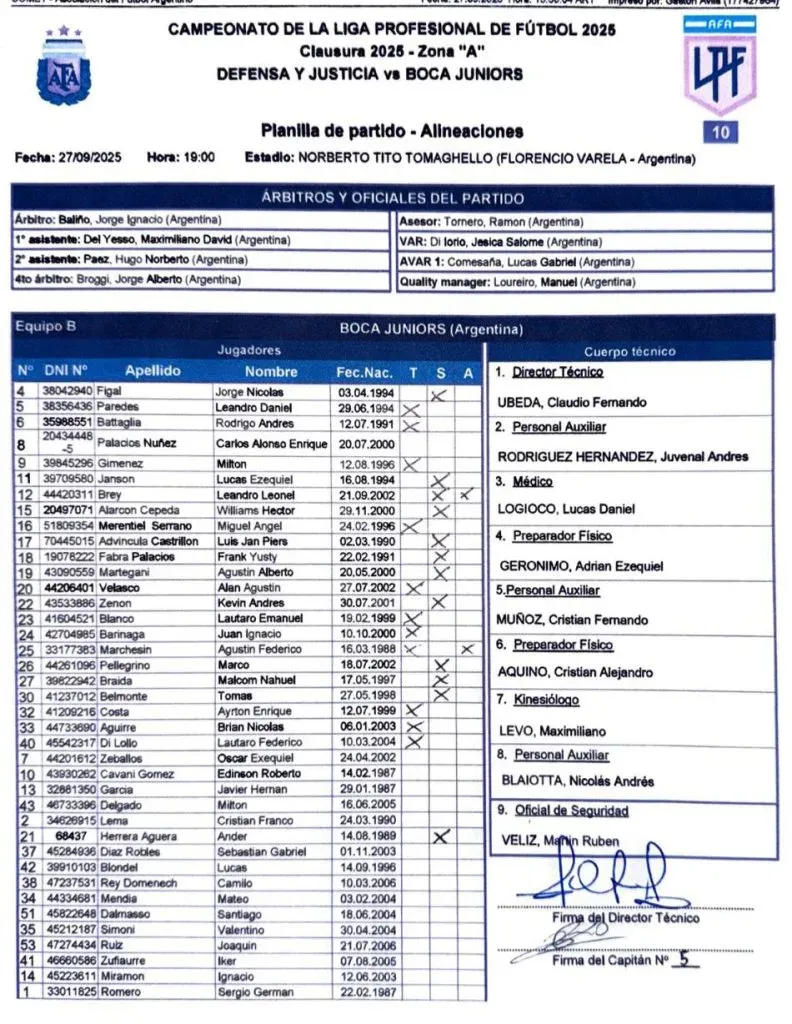 De esta manera, el once de Boca para enfrentar a Defensa y Justicia es Agustín Marchesín; Juan Barinaga, Lautaro Di Lollo, Ayrton Costa, Lautaro Blanco; Alan Velasco, Leandro Paredes, Rodrigo Battaglia, Brian Aguirre; Miguel Merentiel y Milton Giménez.