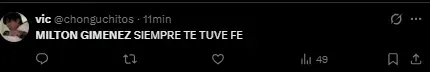 En las redes sociales, hubo un apuntado principal por su gran tarea en el estadio del Xeneize. Se trata de Milton Giménez, quien convirtió los dos primeros goles del encuentro ante la Lepra. Los hinchas se rindieron ante su tarea y elogiaron lo hecho este domingo.