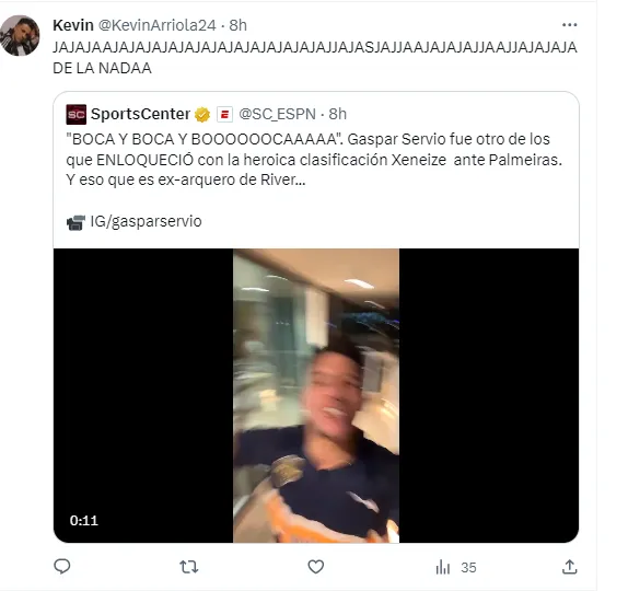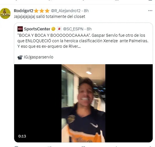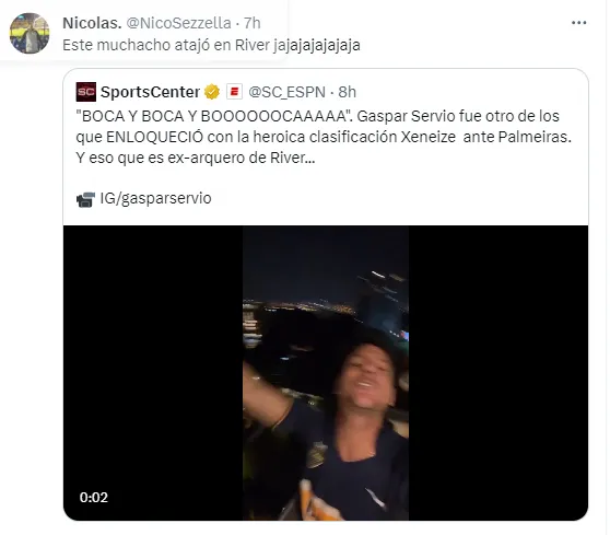 Si bien Servio era confeso hincha de Boca, su festejo se viralizó y llamó la atención de muchos fanáticos en las redes sociales: quedaron incrédulos con la reacción del exRiver tras el pase del Xeneize a una nueva final de América.
