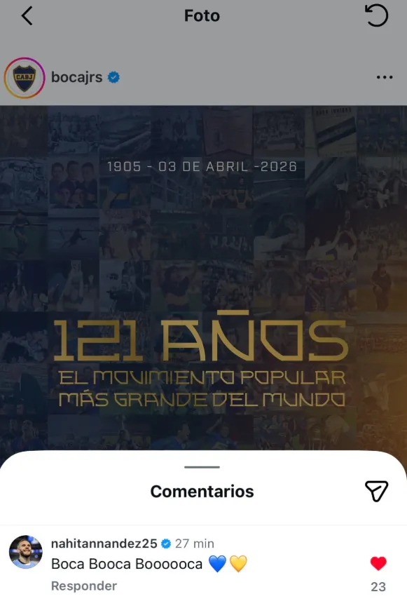 Y hubo un mensaje que resaltó sobre el resto, y fue el de Nahitan Nández. “Boca, Boca, Boca”, puso el uruguayo en Instagram al pie del posteo que hizo el Xeneize. En las horas previas ya había hecho una publicación para felicitar al club y los hinchas se habían enloquecido.