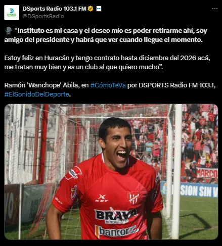 “Instituto es mi casa y el deseo mío es poder retirarme ahí, soy amigo del presidente y habrá que ver cuando llegue el momento“, señaló Wanchope en diálogo con DSports.