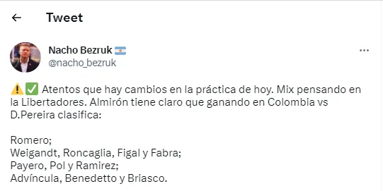 La misma se dio en el mediocampo. Todo parecía indicar que Alan Varela, Pol Fernández y Martín Payero conformarían el tridente en esa zona de la cancha. Pero hubo una modificación. Y no, no se trata de Cristian Medina ni Ezequiel Fernández (todavía tiene que cumplir una fecha de suspensión). El elegido por Jorge fue Juan Ramírez y quien salió fue Alan Varela.