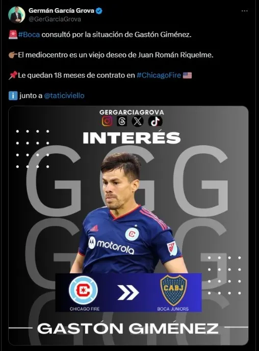 La información fue revelada por el periodista Germán García Grova junto a Claudio Civello, fuentes que remarcaron que Boca consultó por la situación de Gastón Giménez en las últimas horas.