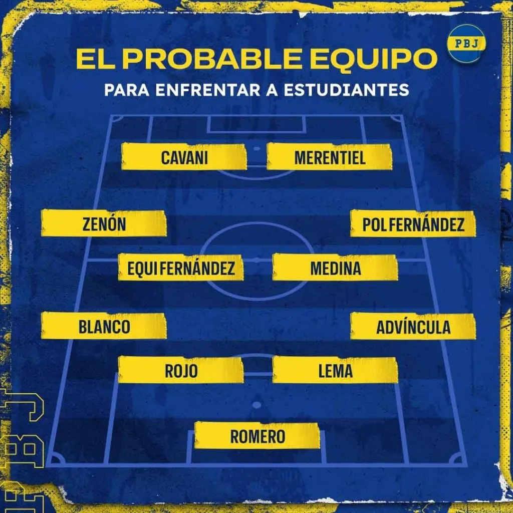 Diego Martínez paró el once que jugaría contra Estudiantes en la última práctica de fútbol: Sergio Romero; Luis Advíncula, Cristian Lema, Marcos Rojo, Lautaro Blanco; Guillermo Fernández, Ezequiel Fernández, Cristian Medina, Kevin Zenón; Miguel Merentiel y Edinson Cavani.