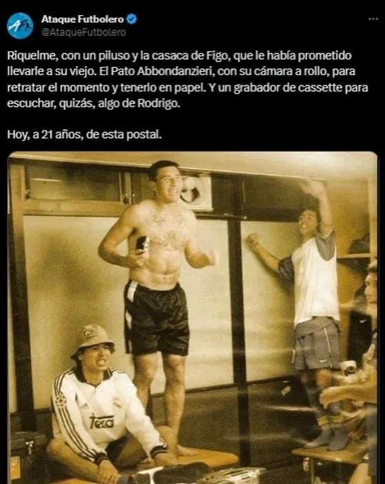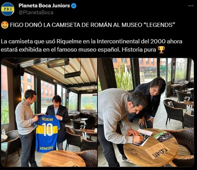 Han pasado nada menos que 23 años desde la gran final entre Boca y Real Madrid por la Intercontinental del 2000, partido que coronó al xeneize como el mejor equipo del mundo tras el 2 a 1 con el doblete de Martín Palermo. Ahora, con el relato hecho historia, apareció nada menos que Luís Figo con la camiseta que usó Juan Román Riquelme en aquel legendario partido.