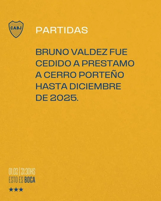 A partir de una publicación de Esto es Boca, el Xeneize confirmó que Bruno Valdez continuará a préstamo en Cerro Porteño hasta diciembre del 2025. Y por ende, el Xeneize mantendrá liberado el cupo de extranjero del defensor paraguayo.