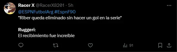 Tras estas palabras de Oscar Ruggeri, los hinchas de Boca no pudieron contener la risa y estallaron en las redes sociales. A través de X (Twitter), un fanático del Xeneize, a modo de broma, marcó: “La cara de Ruggeri, jajajaja“.