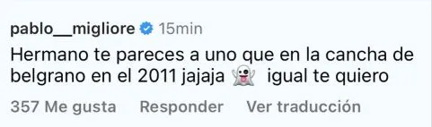“Igual te quiero”, completó el exarquero del Xeneize junto a un emoji de un fantasma, haciendo alusión al descenso de River al Nacional B en 2011. Claro está, los hinchas del conjunto azul y oro observaron rápidamente la broma de Migliore y se sumaron a esta broma. “Subzero en el 2011 parece”, escribió otro usuario. Más allá de los comentarios, todo quedará en las redes y se sumará a uno de los tantos intercambios entre Otamendi y Migliore, quienes forjaron esta amistad hace años.
