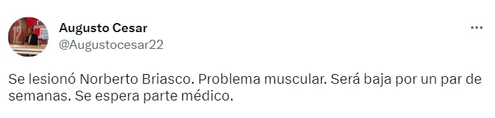 La enfermería xeneize suma un nuevo integrante y le abre las puertas a Norberto Briasco, quien este miércoles no formó parte del entrenamiento debido a un problema muscular.