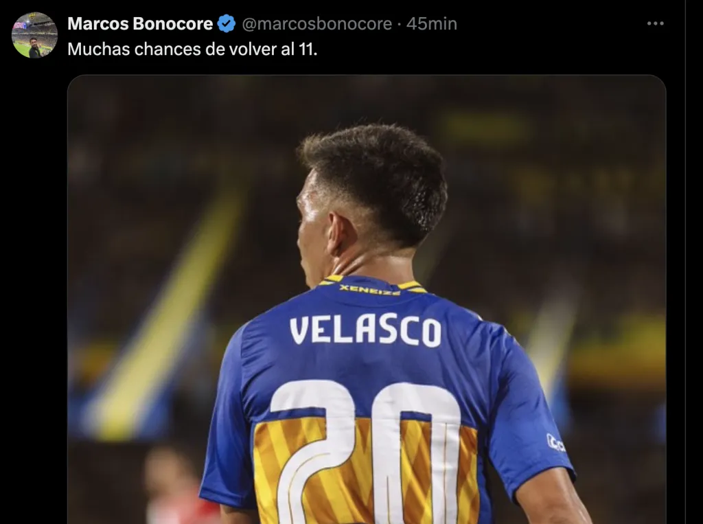 Una de las razones de esto es el posible ingreso de Alan Velasco en el equipo titular, información que fue revelada por el periodista Marcos Bonocore. El ex Independiente ingresó de gran manera y, con su gol de por medio, uno de los planes de Russo podría ser el intento de seguir potenciando al mediocampista.
