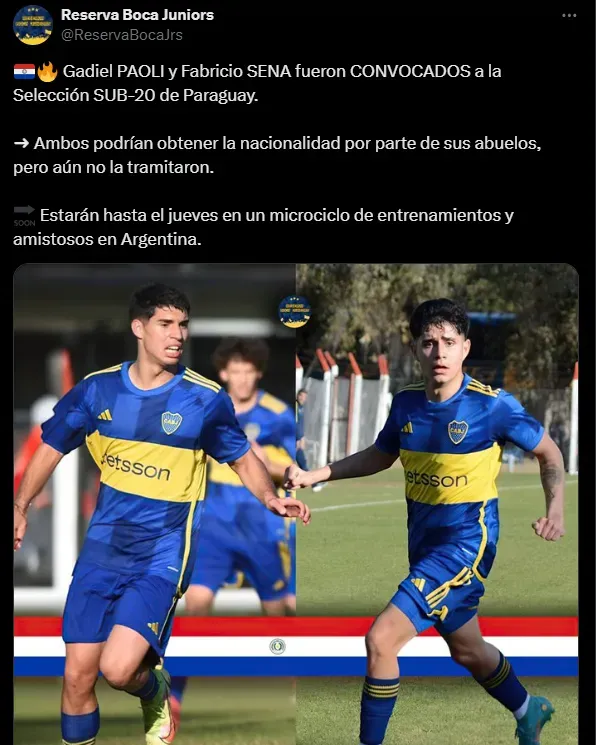 La información fue revelada por la cuenta Reserva Boca Juniors, usuario de X (Twitter) que remarcó que los futbolistas argentinos de categoría 2005 pueden tener la nacionalidad paraguaya por parte de sus abuelos. Sin embargo, aún no la han tramitado.