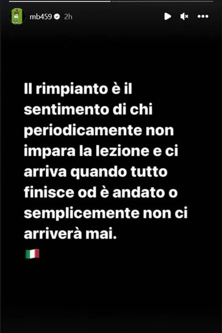 Uno de los que mostró su disconformidad por la citación del atacante argentino fue Mario Balotelli, quien utilizó sus redes sociales para dejar un mensaje polémico en Instagram: “Hay más delanteros en Italia que están en forma, créanme. Arrepentirse es el sentimiento de aquellos que regularmente no aprenden la lección y llegan una vez que todo ha terminado. O simplemente, nunca llegan”.