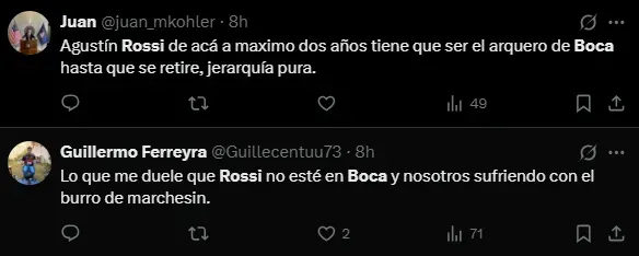 Los comentarios de los hinchas de Boca para Agustín Rossi