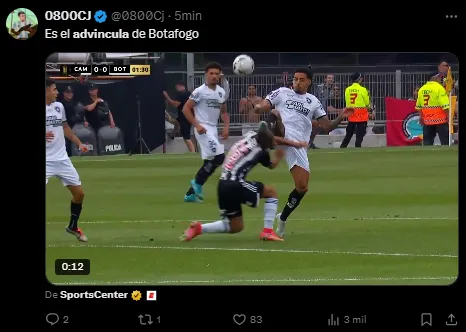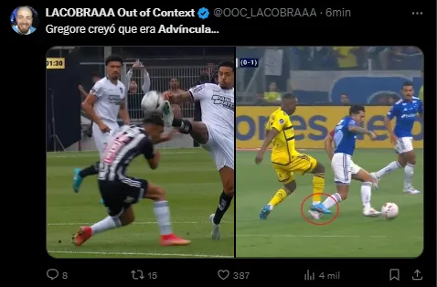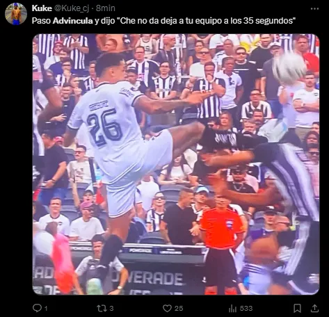 Es que en solo 30 segundos de juego, el árbitro Facundo Tello expulsó a Gregore, volante del Fogao, por una patada en la cabeza a Fausto Vera. Rápidamente, los usuarios recordaron la expulsión del peruano frente al Cruzeiro, motivada por un pisotón en solamente 9 segundos de partido.