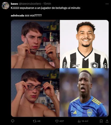 Las bromas de los hinchas de Boca en redes por la temprana expulsión en la final de la Copa Libertadores
