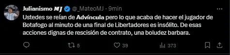 Atlético Mineiro y Botafogo juegan la final de la Copa Libertadores 2024 en el Monumental. En las redes sociales, a poco de comenzar el partido Luis Advíncula fue tendencia en X (Twitter) por un increíble motivo.