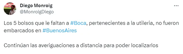 Un tiempo después, Diego Monroig brindó detalles con respecto a este tema. El periodista de ESPN reveló que los bolsos directamente no fueron embarcados en Buenos Aires. De esta manera, la delegación aún continúa localizando los bolsos a la distancia.