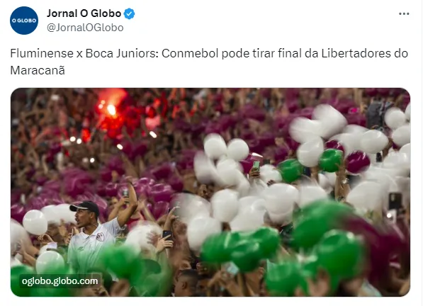 El portal O Globo, quien sacó a la luz el conflicto entre Conmebol, Flamengo y la CBF, no descarta que la Final de la Copa Libertadores 2023 entre Boca y Fluminense, ante la chance de que el Maracaná no pueda estar a disposición, cambie de ubicación, dando lugar a todas las alternativas: estadio en Río de Janeiro, otra ciudad de Brasil o incluso otro país. De hecho, no sería la primera vez que cambia de territorio. En 2019 se iba a jugar en Santiago de Chile y se terminó jugando en Lima, Perú. No obstante, por estas horas todo forma parte de las especulaciones.