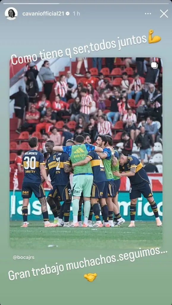 Tras la victoria de este domingo, dejó un mensaje para sus compañeros en Instagram: “Como tiene que ser, todos juntos. Gran trabajo muchachos, seguimos“.
