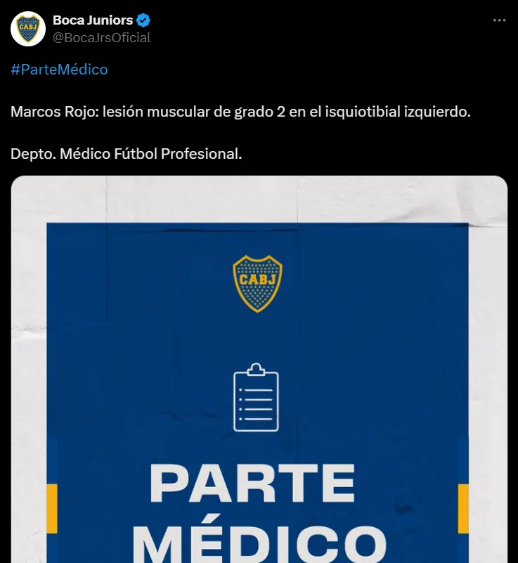 El departamento médico de Boca confirmó que Marcos Rojo tiene una “lesión muscular de grado 2 en el isquiotibial izquierdo”. Así, también quedaría en duda para el partido frente a Fortaleza del miércoles 15 de mayo en La Bombonera. Y luego se verá cómo está para los duelos frente a Central Córdoba (SdE) y Talleres.