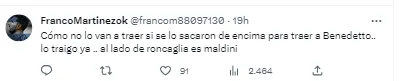 La consigna la hizo ‘La Boca Tw’ y tuvo más de 200 respuestas. El debate divide opiniones. Algunos creen que Lisandro podría aportarle jerarquía al plantel y no dudan: “Lo traigo ya”. Otras respuestas, en cambio, fueron más terminantes: “Licha hacía goles pero no era una garantía atrás...”.
