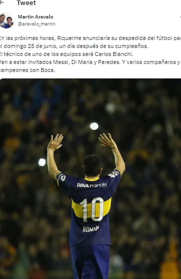 Juan Román Riquelme tendrá su adiós oficial. Nueve años después del último baile del Diez con la camiseta de Boca, al fin parece haber una fecha concreta para su partido de despedida: el mismo sería el domingo 25 de junio, un día después de su cumpleaños, en La Bombonera.