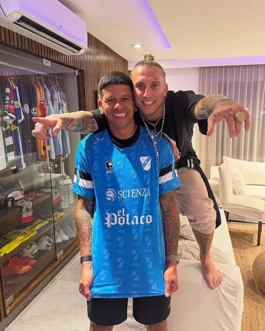 Hace unos días, fue el cumpleaños del exManchester United y el cantante publicó esta foto junto a una breve descripción. “Feliz cumpleaños al Marcos de La Plata (el gran capitán) el que nunca cambió“. También hay un motivo para regalarle esta casaca: el ‘Polaco’ es uno de los auspiciantes que acompaña al Gasolero para esta temporada.