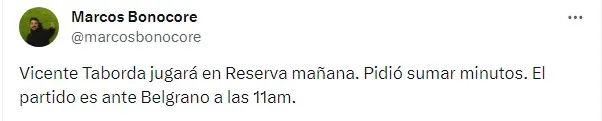 Desde su regreso, solamente integró 4 sobre 11 listas de concentrados y sumó 100 minutos repartidos en 3 partidos, todos en el plano local. Sin rodaje en la Primera, el juvenil tomó una decisión y de acuerdo a lo citado por el periodista Marcos Bonocore, pidió sumar minutos y jugará el próximo partido de Reserva.