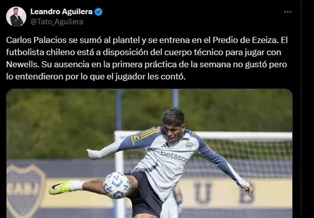 Sin embargo, eso no fue todo. Ya que el periodista Leandro Aguilera contó otro detalle de último momento. Y es que Carlos Palacios ya se sumó al plantel este martes por la mañana.