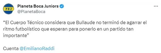 A la espera de su estreno, se supo el motivo por el cual no se dio este ansiado debut. De acuerdo a lo dicho por el periodista Emiliano Raddi en ESPN, “el cuerpo técnico considera que no terminó de agarrar el ritmo futbolístico que esperan para ponerlo en un partido tan importante”.