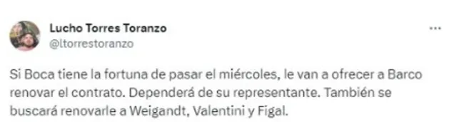 Consecuentemente, a partir de esta situación, el ídolo boquense fue consultado por la situación de Barco y contestó firmemente: “Barco tiene contrato hasta diciembre del 2024“. Además de esto, como reveló Luciano Torres Toranzo en los pasados días, Boca planeaba ofrecerle a Valentín la renovación de su contrato para que su salida no se de tan sencilla. ¿Qué sucederá?