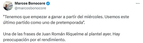 Tras lo sucedido, el presidente juntó al plantel y se reunió con ellos. Si bien fue un diálogo corto, la intención es dejar en claro que están a tiempo de revertir esta situación. Además, el periodista Marcos Bonocore brindó más detalles de este cónclave y reveló una de las frases de la máxima autoridad: “Tenemos que empezar a ganar a partir del miércoles. Usemos este último partido como uno de pretemporada”.