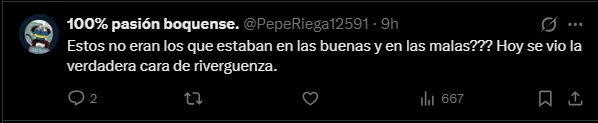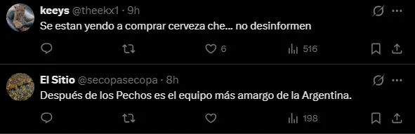 “Así de chiquitos“, “Esa es su verdadera identidad” y “¿Eso es vivir y jugar con grandeza?” fueron algunos comentarios por parte de los fanáticos. Lo cierto es que quisieron marcar la gran diferencia que hay con Boca, quienes siempre acompañan hasta el final.