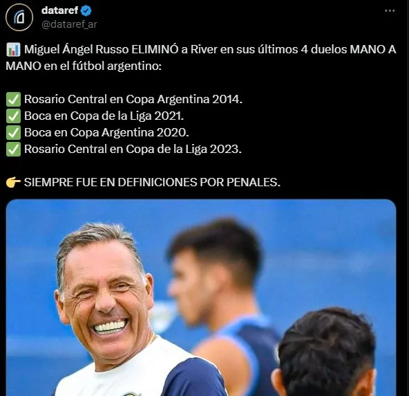 En los últimos 4 enfrentamientos “mata-mata” contra River, Miguel Ángel Russo logró imponerse en todos ellos. ¿La particularidad? Todas las victorias fueron por penales.