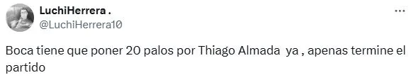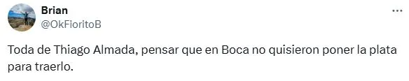 La actuación del juvenil no pasó desapercibida y los Xeneizes no ocultaron su deseo de tenerlo en el plantel que dirige Fernando Gago. “Tendría que estar en Boca“, “Boca tiene que poner 20 palos ya” o “Esa clase de jugadores le falta a Boca“, fueron algunos de los comentarios en “X” (Twitter).