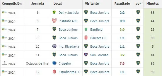 Cuatro de ellos se dieron con estos dos atacantes como titulares: frente a Defensa y Justicia, Barracas Central y Estudiantes de La Plata en el torneo local. Y un dato favorable es que el cuadro de la Ribera no cayó en ninguno de estos cotejos.