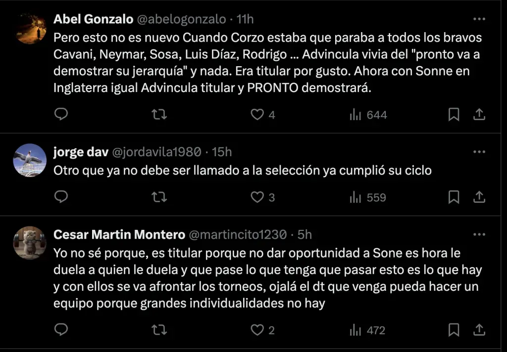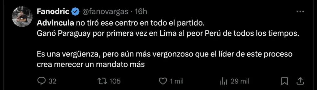 Advíncula no fue únicamente reprobado por parte de los hinchas peruanos en el estadio. Sino que también en las redes sociales se encargaron de apuntar contra el defensor por su bajo rendimiento: “Es hora de renovación”, “Chau para siempre”, y “Advíncula no tiró un centro en todo el partido”.