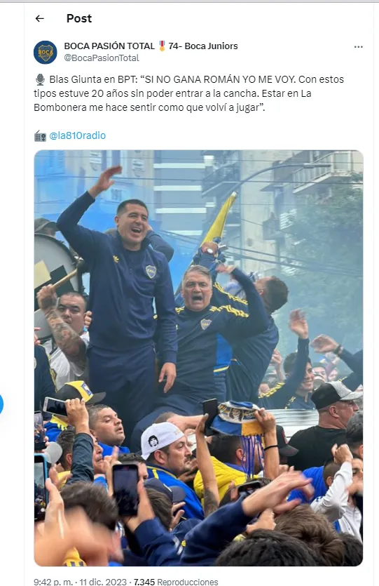 Blas Armando Giunta bancó fuerte a Juan Román Riquelme a días de las elecciones en Boca. El ídolo volvió a trabajar en el club luego de más de 20 años y actualmente es el coordinador de las Divisiones Inferiores del club, junto a Diego Soñora.