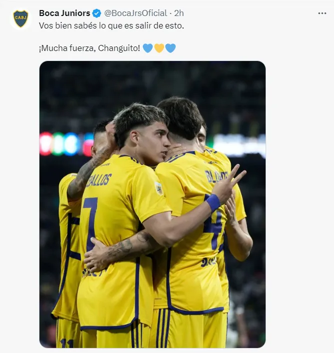 La cuenta oficial de Boca, además de informar el parte médico, escribió un sentido mensaje: “Vos sabés bien lo que es salir de esto. ¡Mucha fuerza, Changuito!”.
