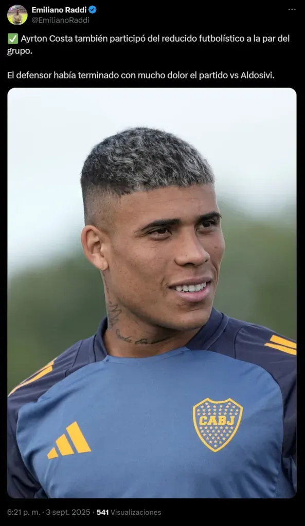 Sin embargo, luego de la práctica, se pudo conocer que sólo fue un susto. El periodista Emiliano Raddi de Planeta Boca Juniors, reveló que el central trabajó con normalidad y fue parte del reducido futbolístico que hizo el plantel. De esta manera, las dudas quedaron despejadas y Ayrton se encuentra bien.