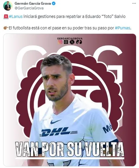Eduardo Salvio se marchó a México tras su etapa en Boca y allí vistió la camiseta de Pumas. A dos años de su llegada a este club, Toto finalizó su vínculo y quedó con el pase en su poder. Después de tomar esta decisión, fue viral por algunas imágenes en redes sociales con la indumentaria del Xeneize. Ahora, podría retornar al país y de confirmarse, tendrá una nueva experiencia en Argentina.
