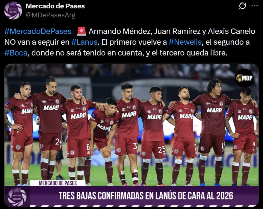 Pero su ciclo en el conjunto del sur del Gran Buenos Aires llegaría a su fin en el cierre de este año. Según informó la cuenta de X (Twitter) Mercado de Pases Argentina, Ramírez no continuará en Lanús y regresará a Boca a finales de diciembre tal como estipula el préstamo acordado entre los clubes.