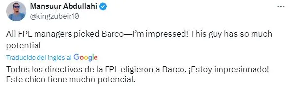 Uno de los partidos de preparación se dio ante Villarreal y el exBoca estuvo presente. Entre análisis tácticos y algunas individualidades, la cuenta FPL Instinctive puso la lupa en Valentín y comentó: “Valentin Barco, tus entregas a domicilio… sinceramente, tus entregas son tan eficientes que dejas en ridículo a Deliveroo”.