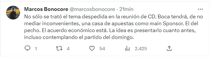 Además, Marcos Bonocore, de TNT Sports, aseguró que “la idea es presentarlo cuanto antes, incluso contemplando el partido del domingo”. ¿Se dará?